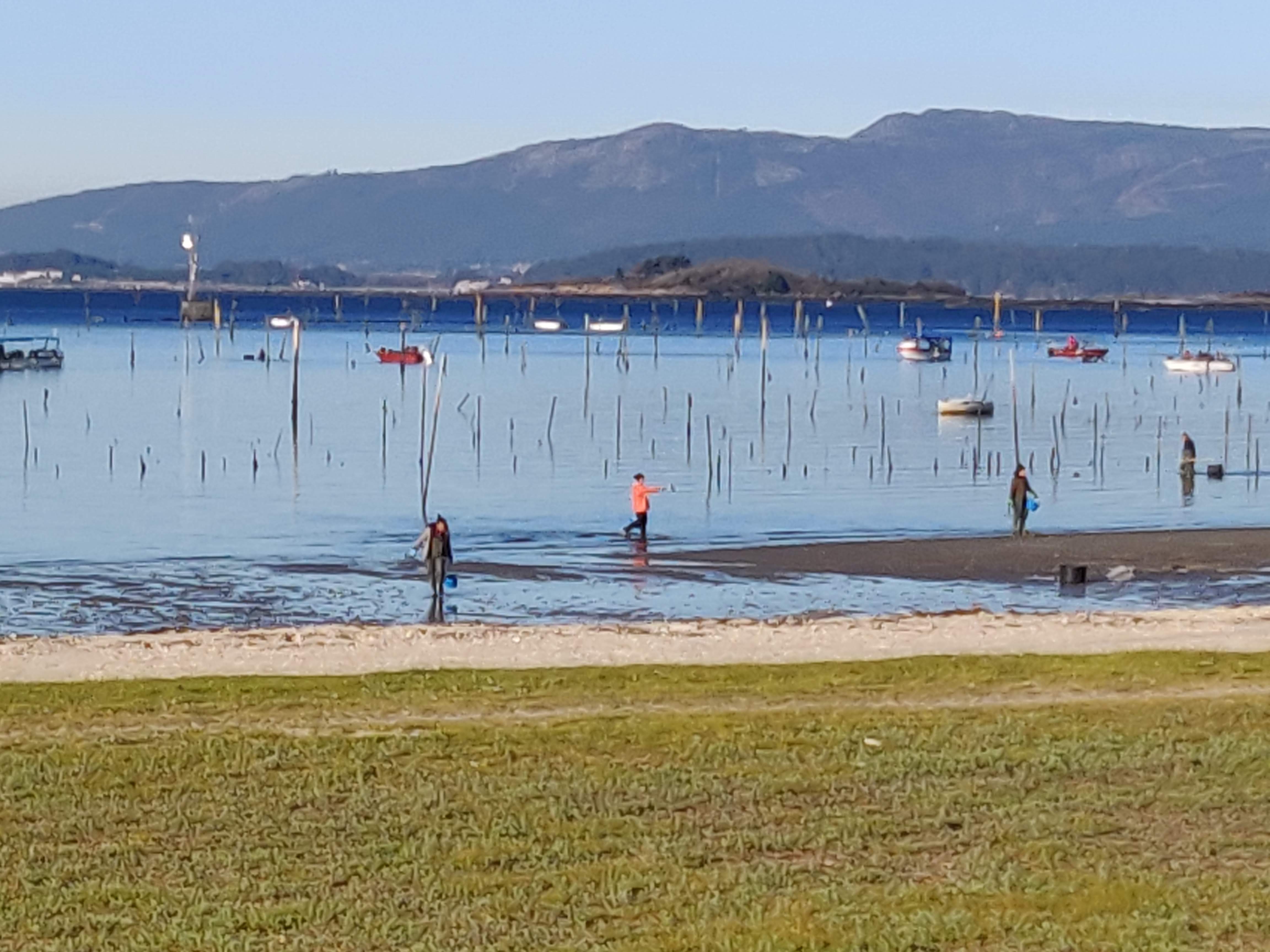 After 2 weeks in Pontevedra we moved to Vilagarcia de arousa (Pontevedra Province, Galicia) to keep looking for an apartment. When we first arrived we stayed on the beach half way between the main town and the small village of Carril, an old fishing village. There is a promenade that runs the whole way and it was a wonderful walk into either town from our apartment. The beach there also has plots of “land” in the water that is harvested for almejas y berberechos (close to what we know as pipis) by local owners. On the low tide, early in the morning the women would put on their waders and go to their plot and harvest the pipis. Interesting that it was pretty much 100% women.