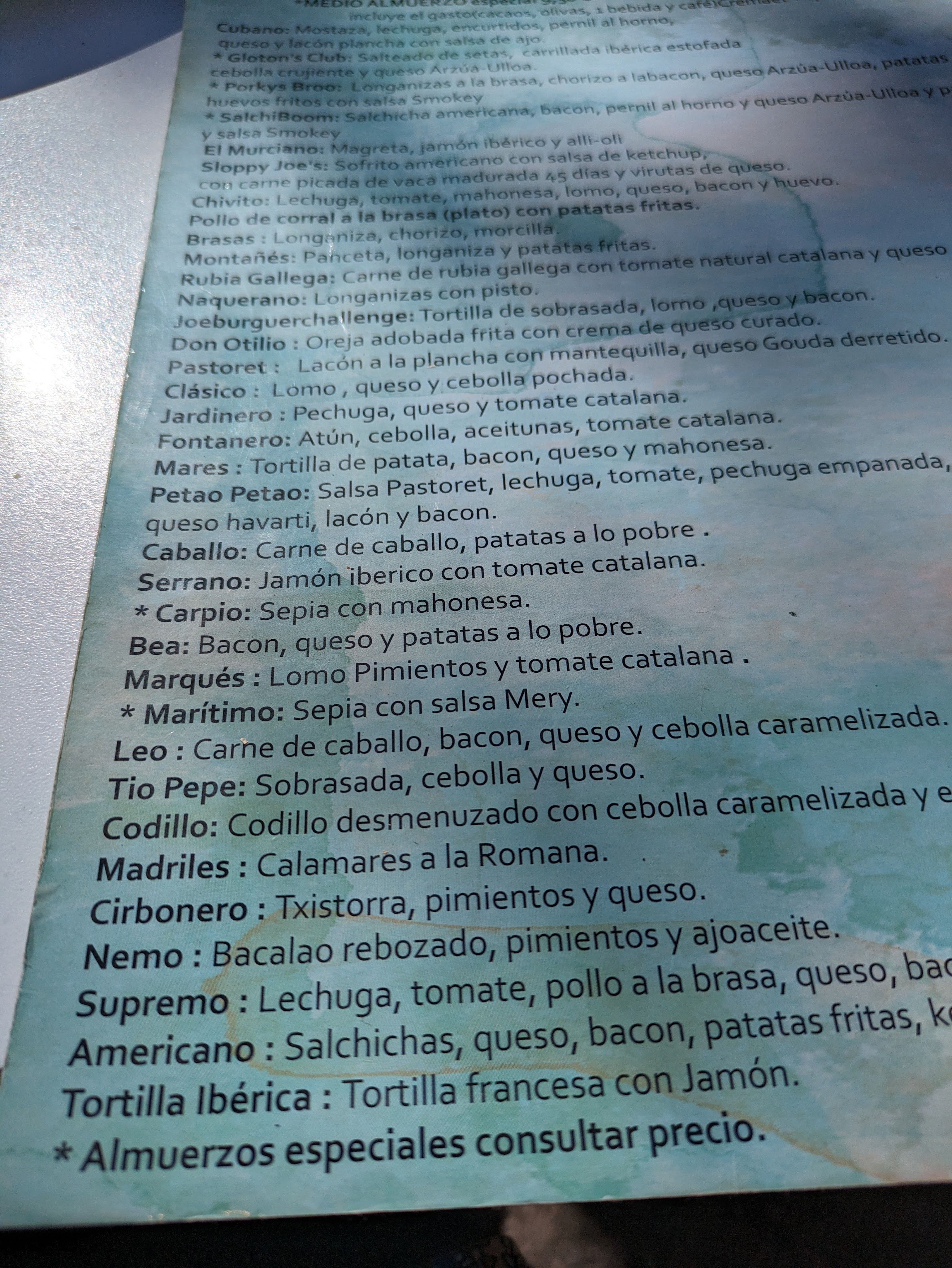 The menu offered an amazing variety of bocadillos (including horse meat if that’s your thing) as well as a small range of raciones.
