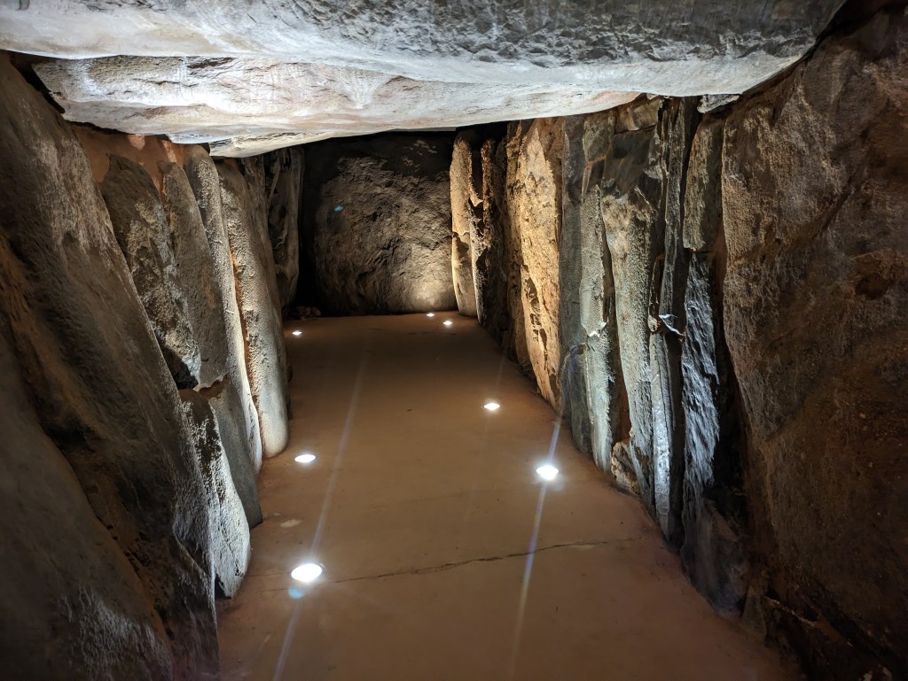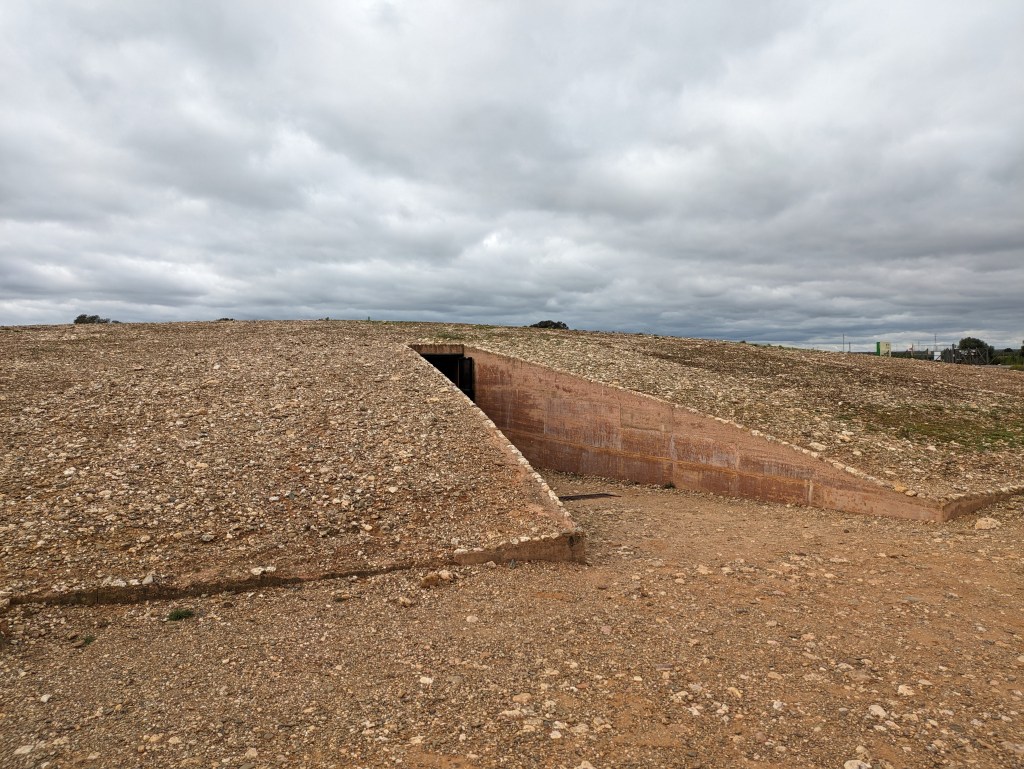 Found by Armando de Soto Morillas, who wanted to build a new house on his estate in 1922, he discovered the site when he began to excavate. A few years later a German archaeologist Hugo Obermaier was asked to perform some research and he discovered eight buried bodies in a fetal position with their respective artifacts beside them. At almost 21 metres long and a diameter of 80 metres, it is one of the largest in Huelva and dates back to between 3000 and 2500 BC. It is oriented from east to west, so that the first rays of sun in the equinox move along the passage and shine on the chamber for a few minutes, as part of a ritual in which maybe the dead came back from the afterlife, bathed in the sunlight.