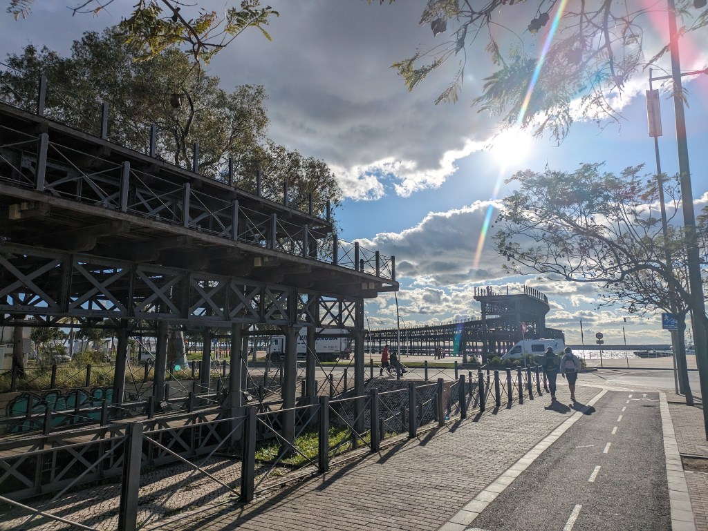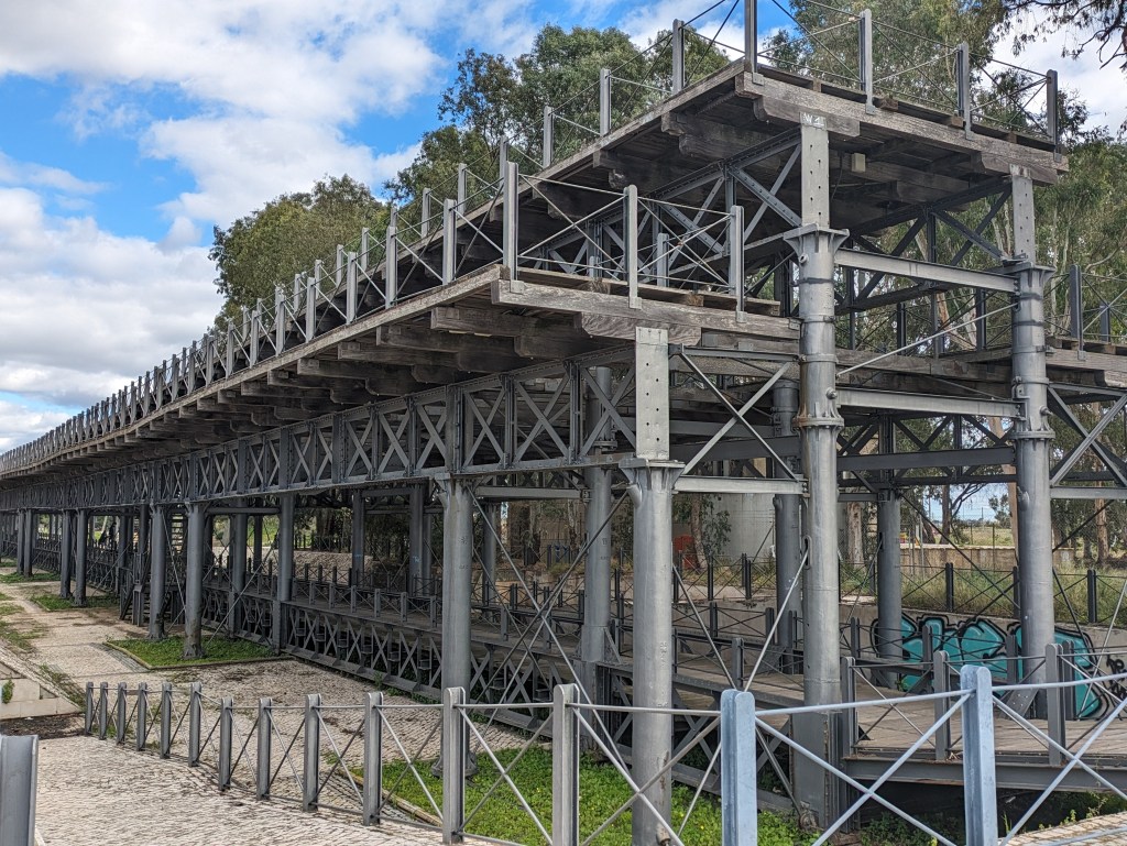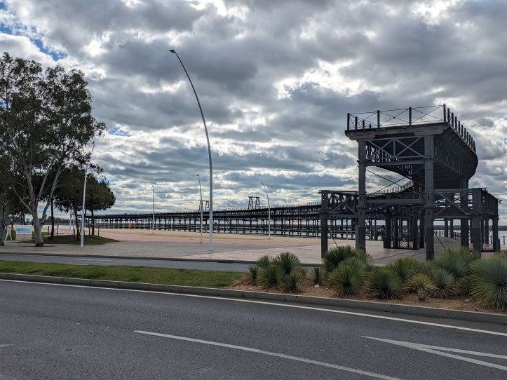We then made our way to Huelva which sits on the Río Odiel, as this was one place we had considered basing ourselves. We went for a walk around town, stopped for a beer and a toilet stop and then checked out the Muelle de Riotinto (19th-century pier built by Rio Tinto). One of the rivers that branch off from the Rio Odiel is the Rio Tinto which is where the company Rio Tinto started from when a group of investors purchased and opened its first copper mine nearby. The large pier that was once used by Rio Tinto to load ships is no longer used and is now a part of the park on the river and is open to people to visit and walk out to the end.