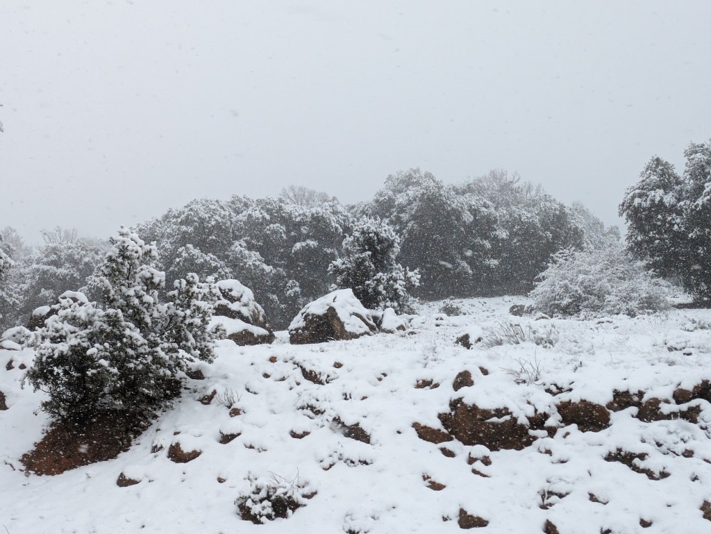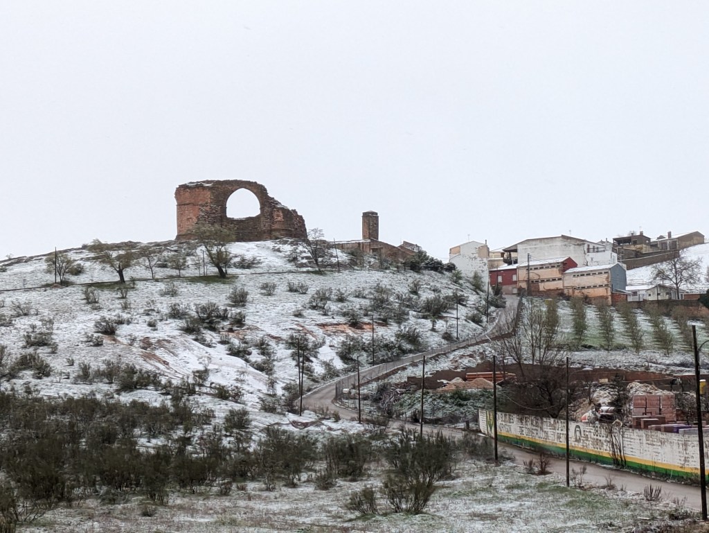 The next morning it was cold as we made our way home. As we left Andalucia and crossed over into Castilla-La Mancha we started to see light snow fall on the hills.