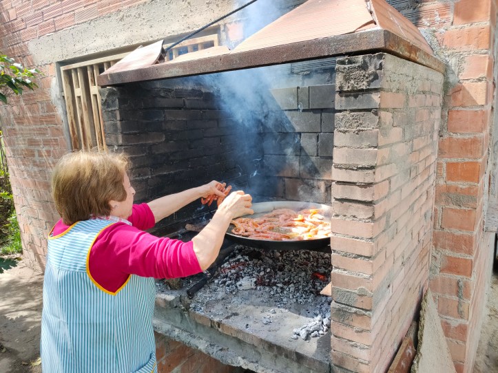 Again all of the extended family got together at the farm for La Mona de Pascua and this year they fired up the BBQ to cook an amazing seafood paella.