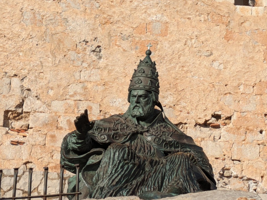 In the fourteenth century, it was garrisoned by the Knights of Montesa, and in 1420 it reverted to the Crown of Aragon. From 1415 to 1423 it was the home of Pope Benedict XIII (Pedro de Luna), whose name is commemorated in the Castell del Papa Luna, the name of the medieval castle. The castle was restored and improved and new walls were added in 1960 when Anthony Mann’s film El Cid was partially filmed there.