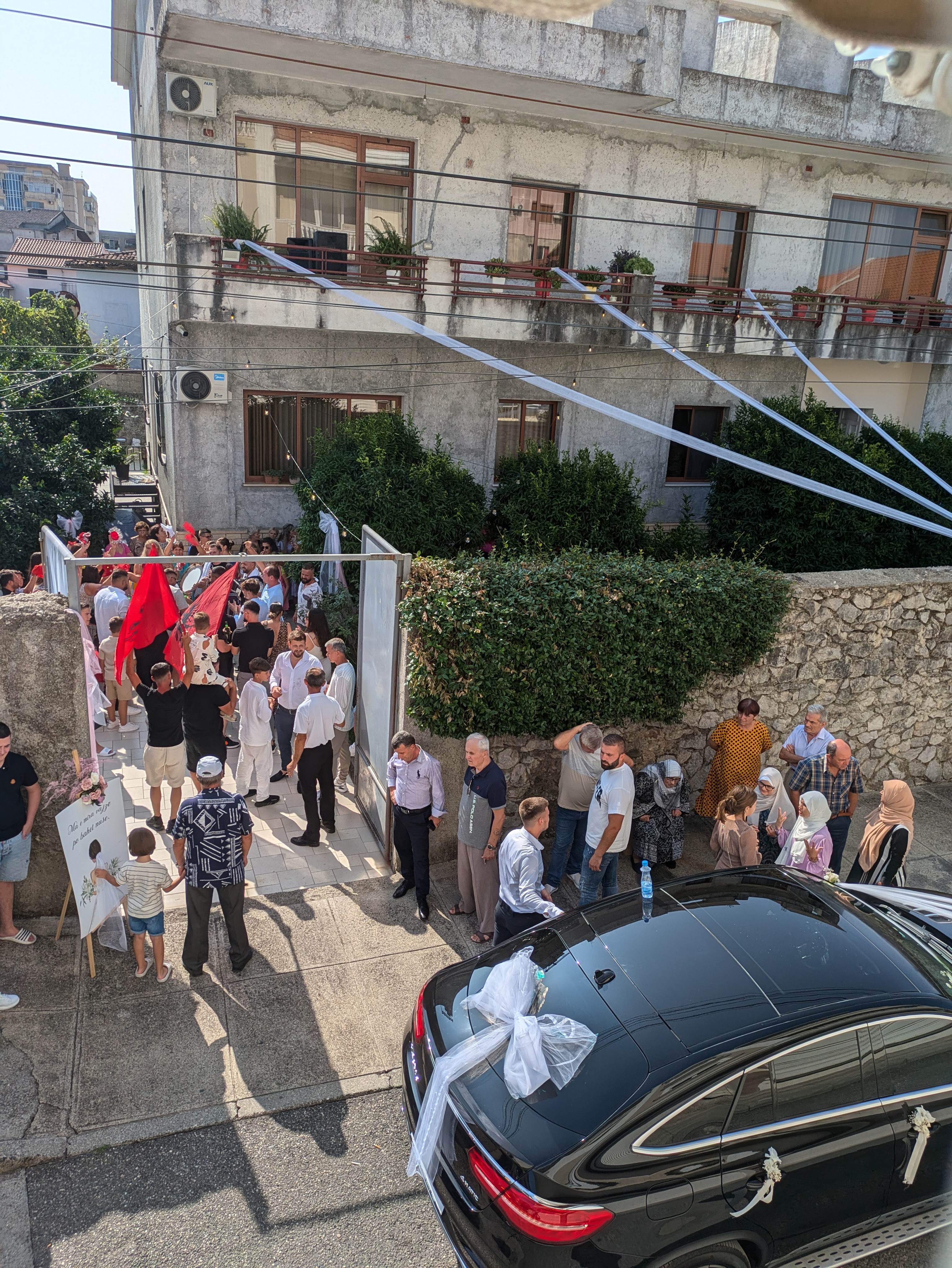 We do not understand what happens or in what order they happen at a wedding in Albania but it was wonderful to watch them celebrate. There was lots of dancing, singing, traditional music and tears as the bride was escorted by her 2 brothers out of the house to meet the groom.