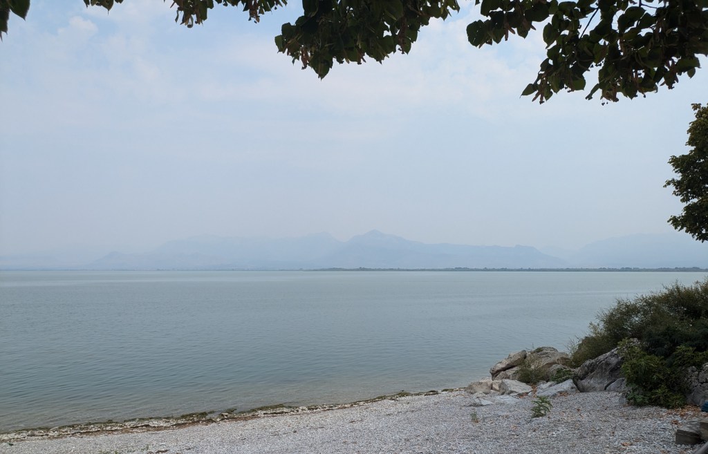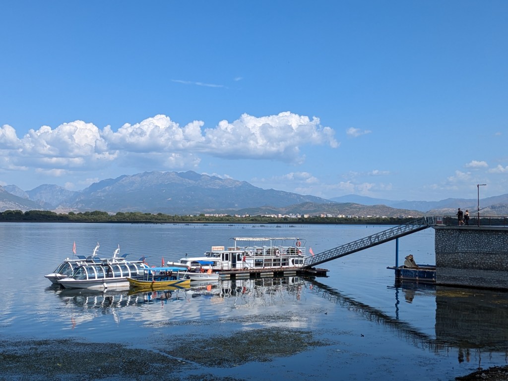 Lake Skadar – also called Lake Scutari, Lake Shkodër and Lake Shkodra – lies on the border of Albania and Montenegro, and is the largest lake in Southern Europe. The city of Shkodër (where we are based) lies on its southeastern coast. The small town of Shiroka is located on the northwestern side of the lake where there is a large boulevard that follows the lake and lots of bars and restaurants (of course) where you can enjoy the view.