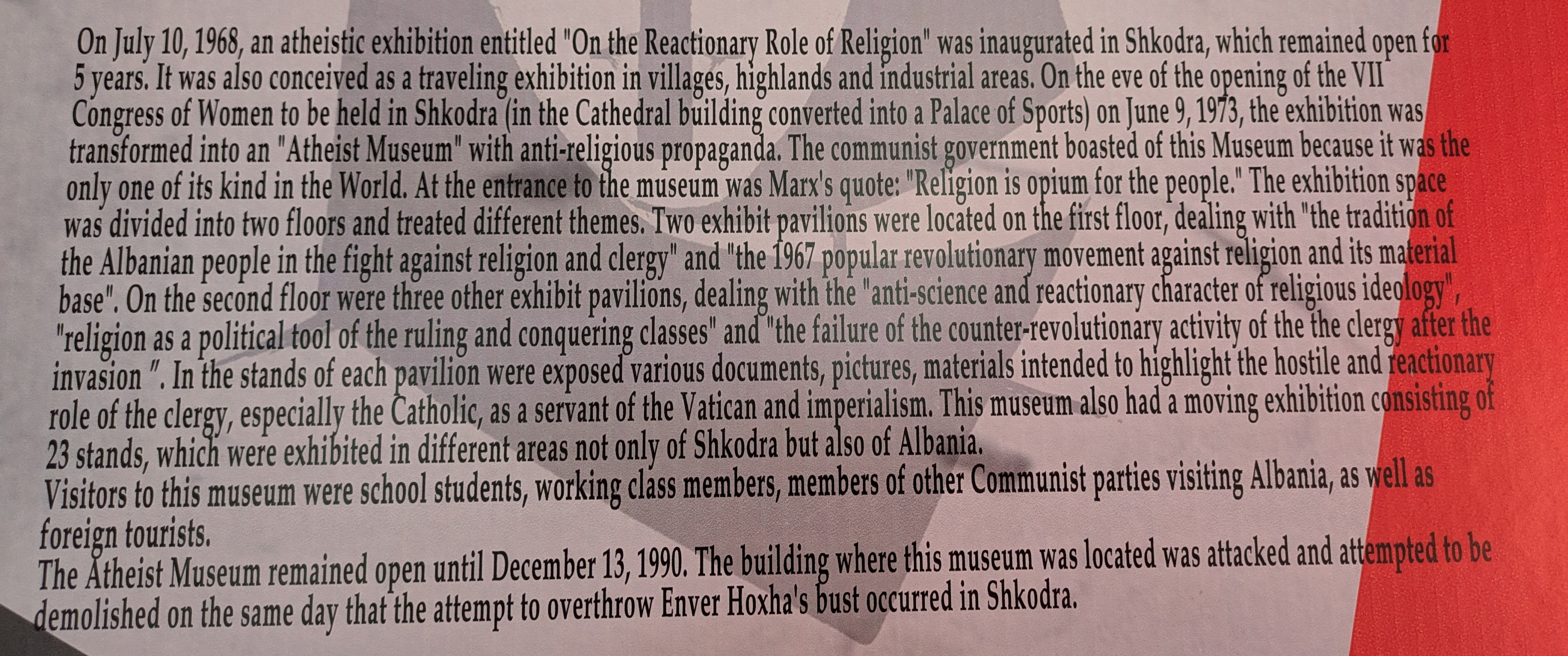 Shkodër was referred to as “the prison city” because the government had created 23 prisons mostly family homes and religious buildings that were converted to prison cells and torture rooms. The prisons held religious leaders (Catholic, Islamic and Orthodox), as well as political prisoners. The government also created an Athiest Museum the only one of its kind in the world.
