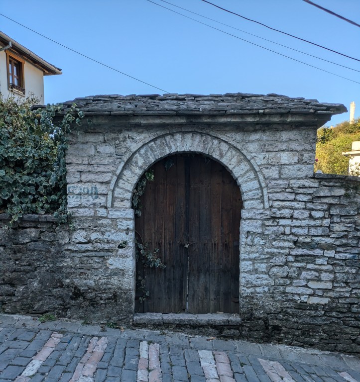We stayed for the night at the traditional stone guest house “Sokaku i te Mareve” whose entrance sits on Rruga (street) Sokaku i te Mareve which is a stone pathway that leads up to the hillside to the lane that you into the centre of town. The pathway Rruga Sokaku i te Mareve translates as “the street of the mad” and the host told us there are many rumours that explain the name but that no one really knows. One of the rumours is that the street is paved with very irregular loose stones, and when people walk in this street, the stones move and seem to follow people back making noise behind the people, so they would run to escape, but stones also run after them following like mad people. Not sure about this explanation.