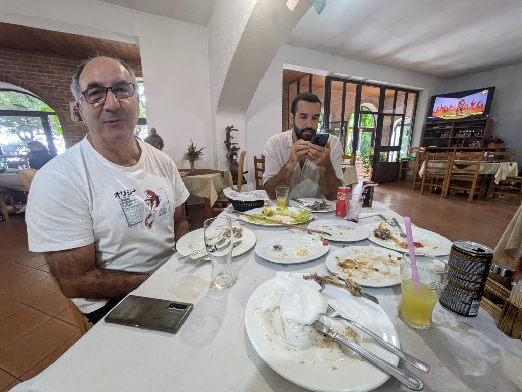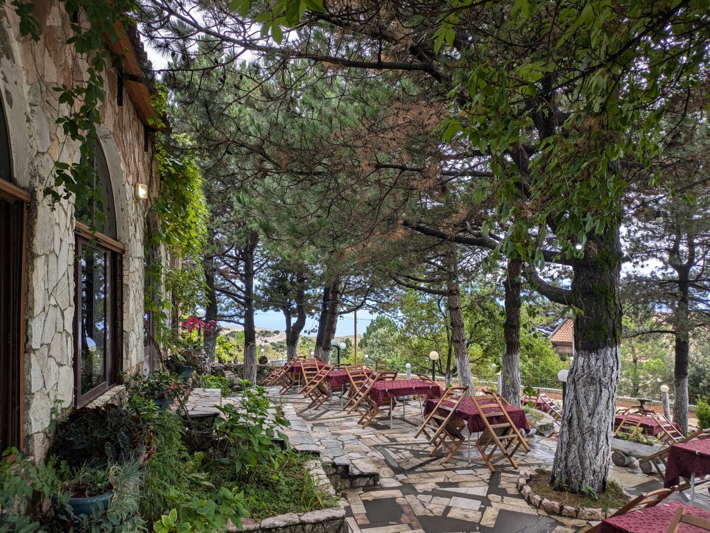 We spent one of our days with Luis travelling north up the coast to the Llogora Pass. Luis had met up with someone from his travels in Sarandë, so Tegan joined as well. It was raining when we left but the forecast reported the rain would pass. We hoped by the time we arrived at the restaurant where we planned on having lunch before returning that there would be sunshine and clear skies.