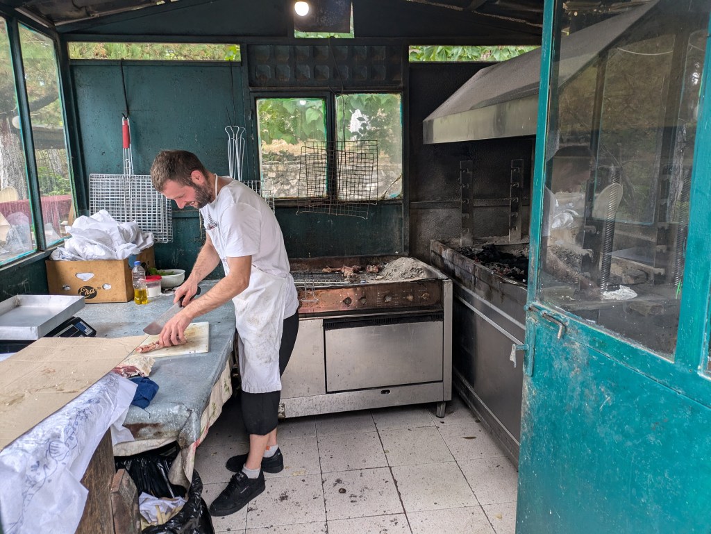 We had lunch at a traditional Albanian restaurant. Typical of these restaurants there was a small hut at the back where the wood fires and rotisserie are kept for roasting the lamb and goats. We have seen this now quite a few times. After lunch, we were happy to see the sunshine and we made our way back down the coast to Sarandë.