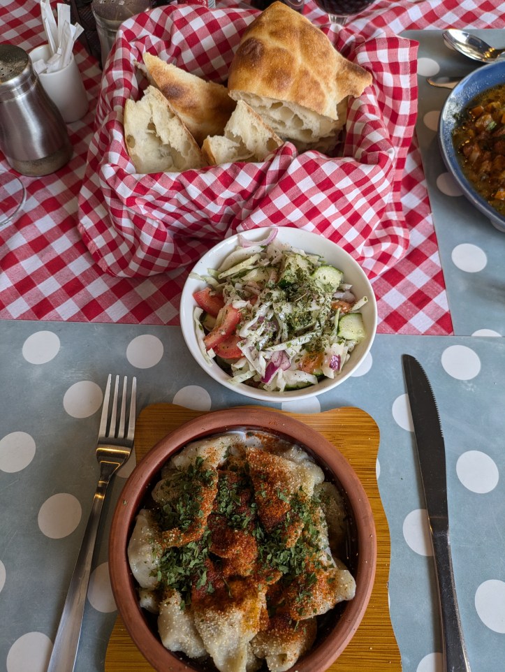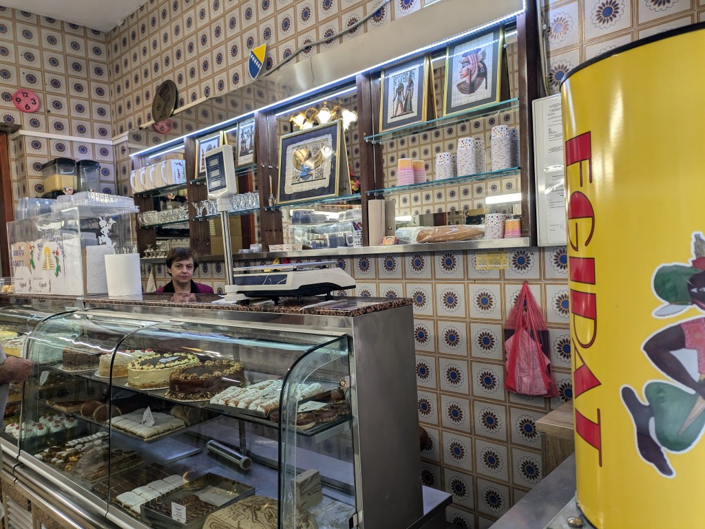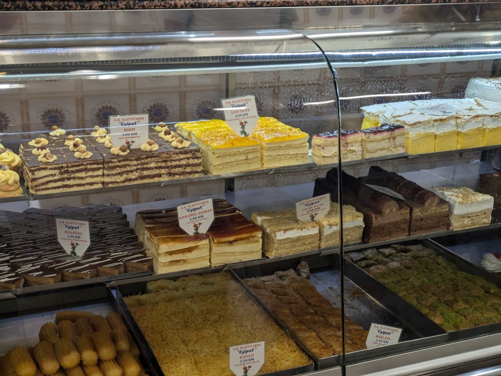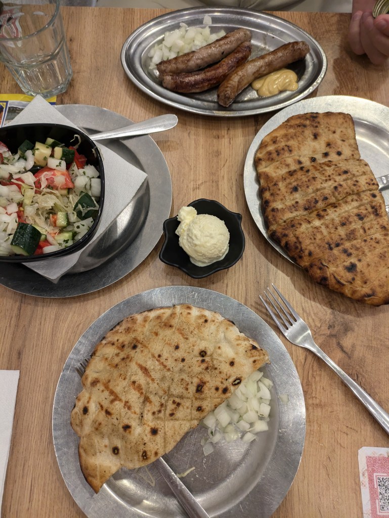 Ćevapi – a grilled dish of minced meat sausage is considered a national dish of Bosnia and Herzegovina. (It’s been added to the list of intangible heritage, with a nomination for inclusion on the UNESCO List of Intangible Cultural Heritage) Ćevabdžinica are bbq restaurants where you can eat Ćevapi and other grilled meat. Always served with somun bread, diced raw onion and kajmak. Ćevapi can of course be found throughout the Balkans but the ones we ate here were delicious.