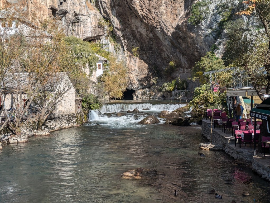 We also visited Blagaj a historic village and protected heritage site which straddles the Buna River the largest underground river in Europe. It was a lovely old village and the river even had a small fish farm on it.