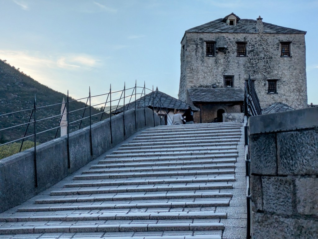 Unfortunately, during the Balkan War, on November 9th, 1993 the bridge was destroyed and what we can see now is the rebuilt version. Until its destruction, it had been used for 427 years. Stones from the original bridge were used to complete the new structure that was finished in 2004. The bridge and the old town were both listed on the UNESCO World Heritage List in 2005.